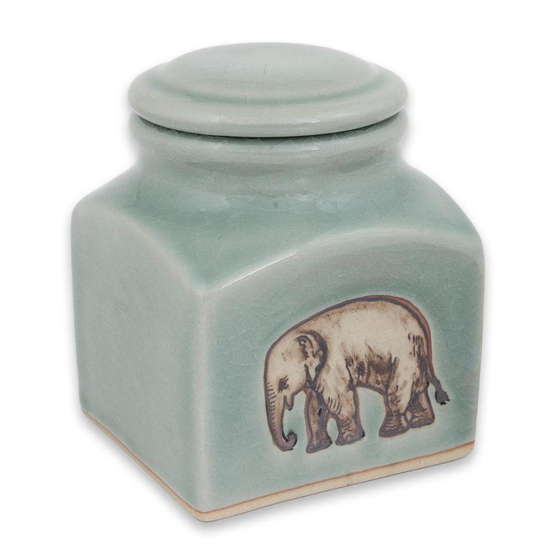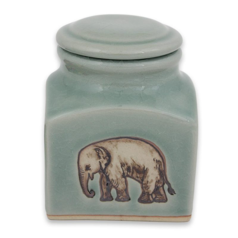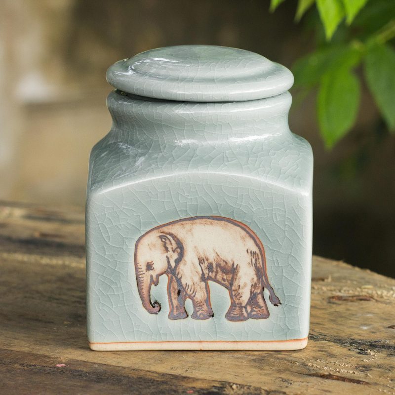 You can find our celadon ceramic jar 'Happy Elephant' by Duangkamol in decor accessories categories such as Celadon Jars and Bottles and Ceramic Jars and Bottles. Enjoy exploring these sections for other Novica treasures.