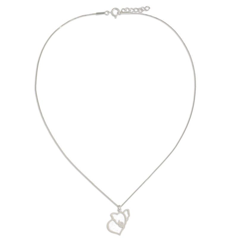 An elephant embraces a heart in an expression of pachyderm love. Resplendent with a brushed satin finish, the sterling silver necklace is crafted by Jantana in Thailand.