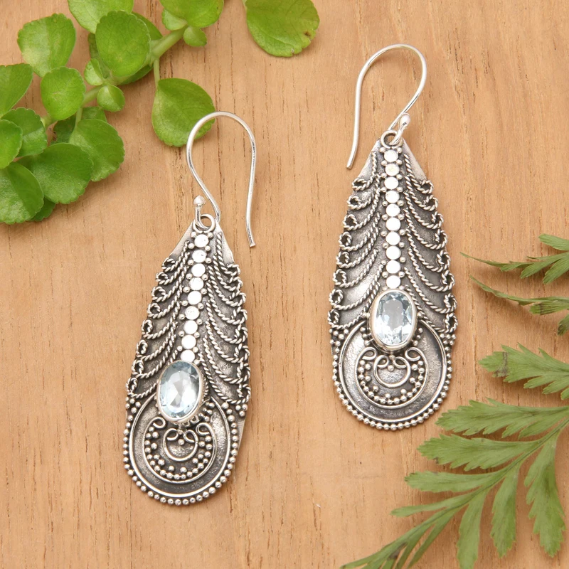 You can find our blue topaz dangle earrings 'Temple Art' by Wayan Neri in jewelry categories such as Bohemian Earrings, Birthstone Earrings, Blue Topaz Earrings, Silver Earrings and Sterling Silver Earrings. Enjoy exploring these sections for other Novica treasures.