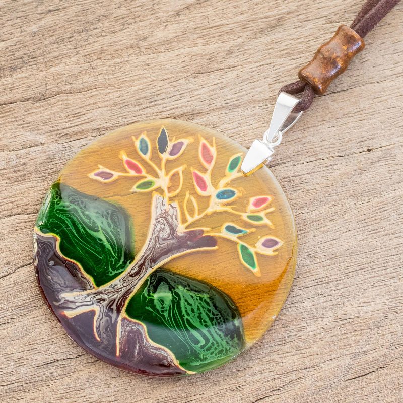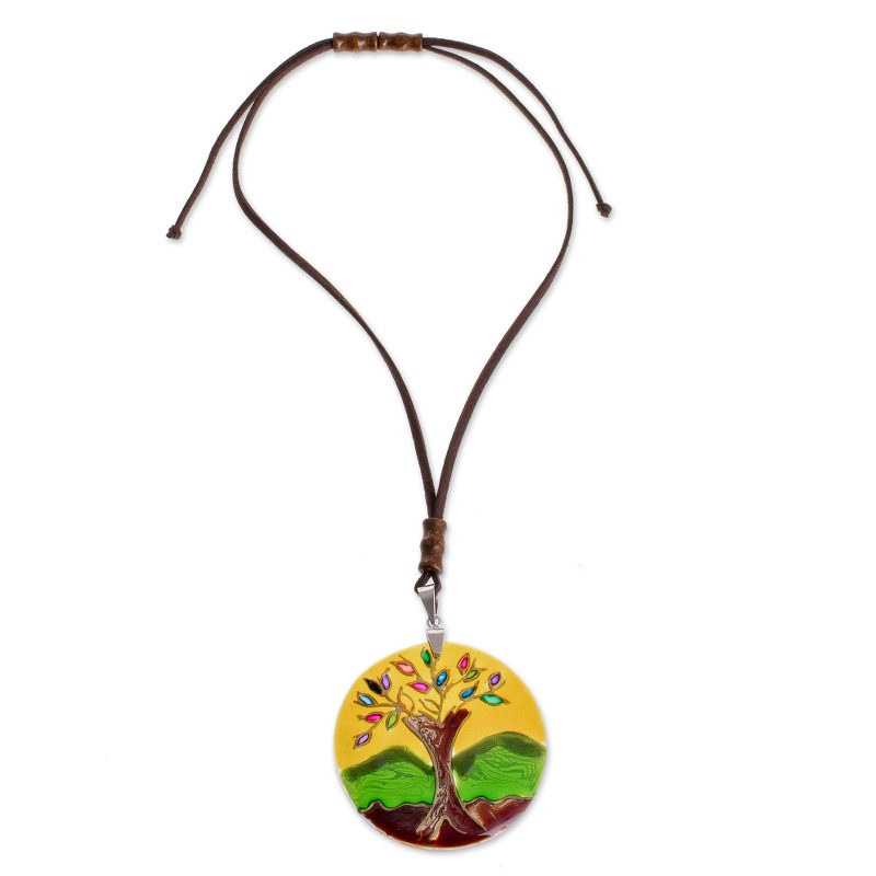 You can find our glass pendant necklace 'Tree of Life at Sunrise' by Rosario Ramirez in jewelry categories such as Leaf and Tree Necklaces, No Stone Necklaces, Wood Necklaces and Pendant Necklaces. Enjoy exploring these sections for other Novica treasures.