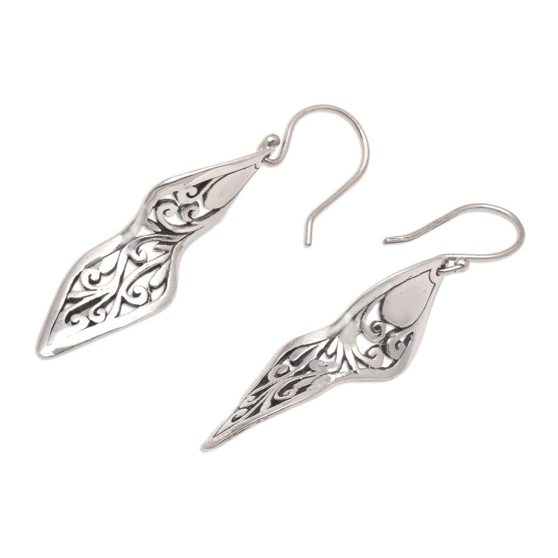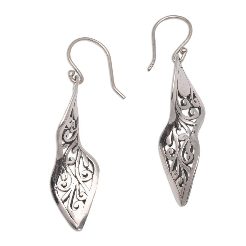 Crafted from sterling silver in twisting shapes, these earrings display lovely swirl patterns in openwork. Dewa Arimbawa of Bali creates these dangle earrings, which are accentuated by a combination of finishes.