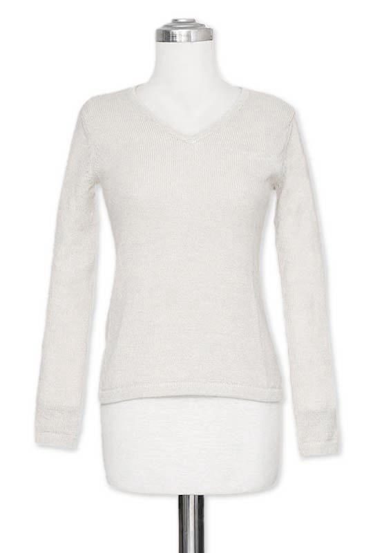 Alfredo Falcon casts a spell of casual elegance with the design of this sweater. It is knit of genuine alpaca wool in soft cream hues featuring a v-neck and long sleeves. Alpaca wool has long been coveted for its warm, lightweight warmth.