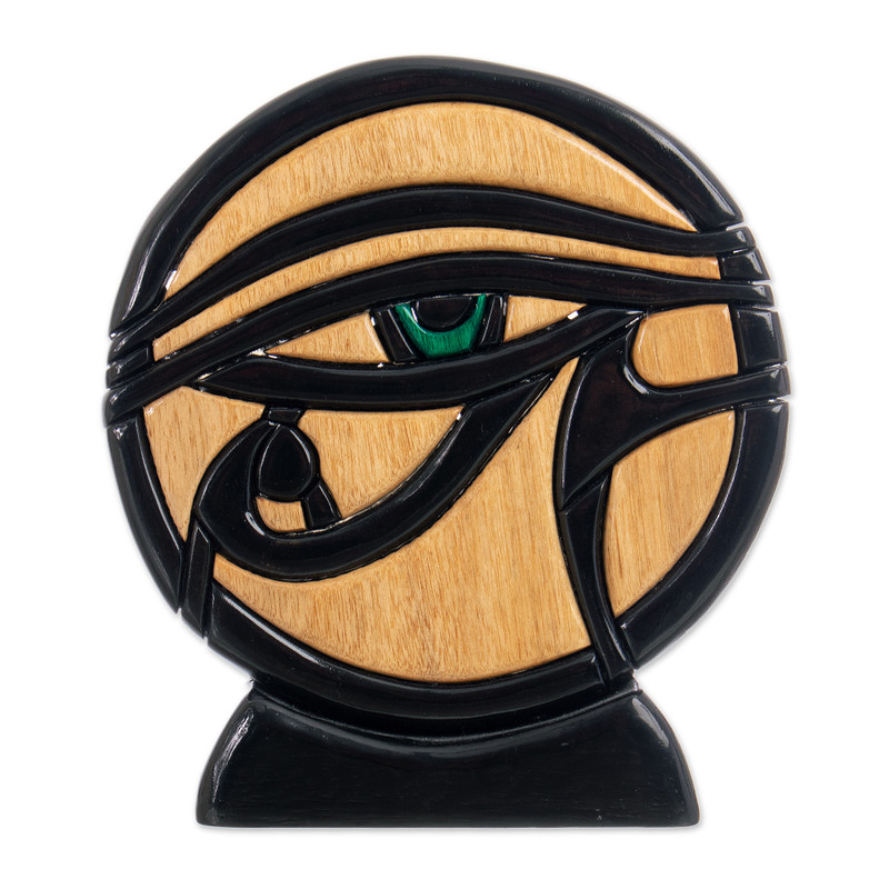 John Barrow designs a stunning interpretation of the legendary Eye of Horus. According to ancient Egyptian traditions, it is said to protect kings in the afterlife and ward off evil. The warm, noble grain of ishpingo wood contributes to the mythical aesthetics of the hand carved sculpture.