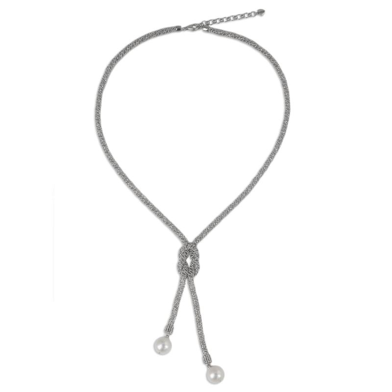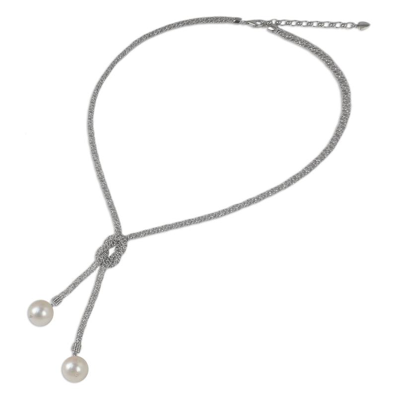 Backed by our 100% Happiness GuaranteeThis beautifully original necklace design is from Thai artisan Angels. She forms a square knot from woven sterling silver ball chain with a polished finish, and adorns the ends of the "ropes" with cultured freshwater pearls.