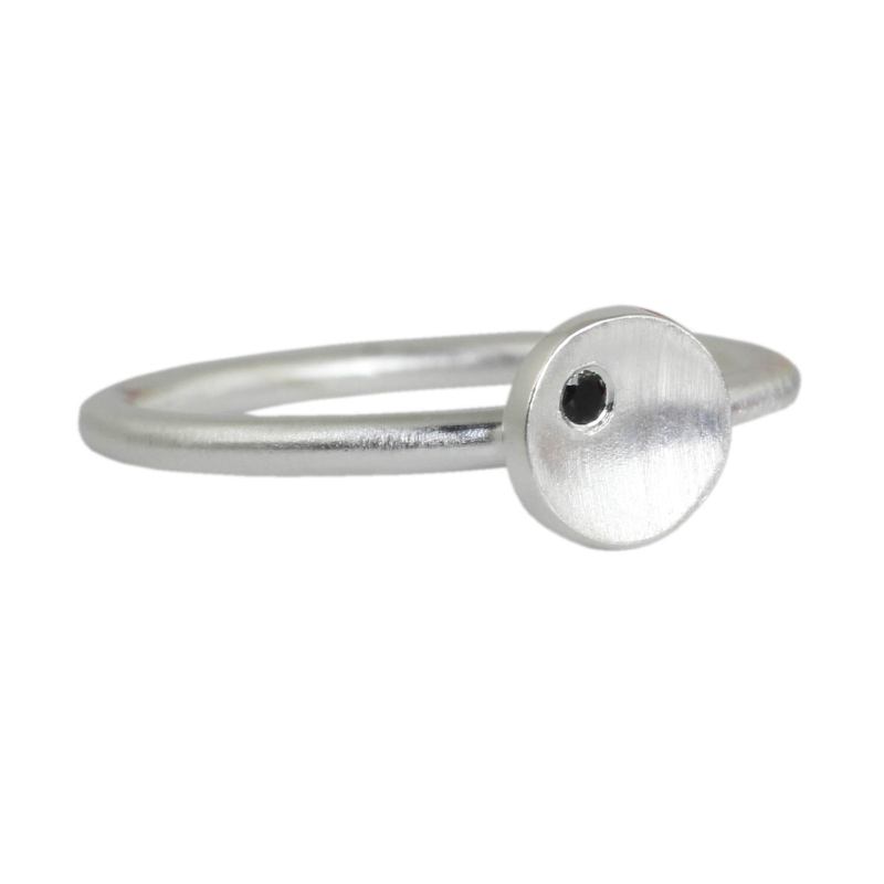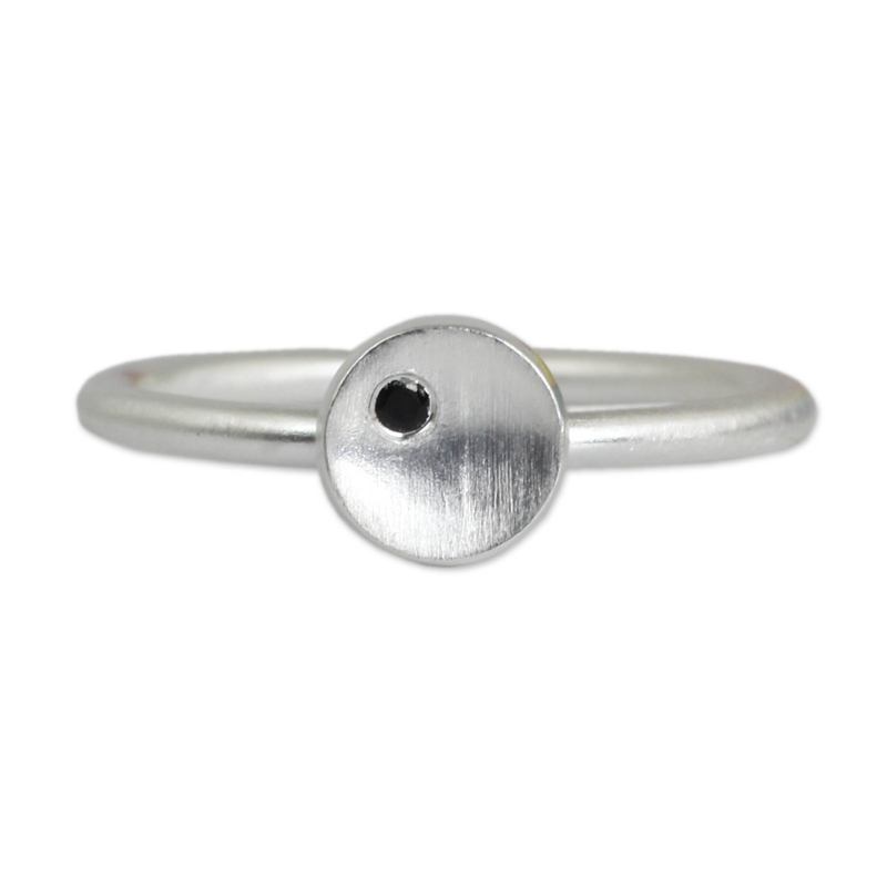 Dainty and feminine, a petite silver circle centers this ring from Thai artisan Jantana. The ring features the artisan's trademark brushed satin finish, as well as a faceted round black onyx gem.