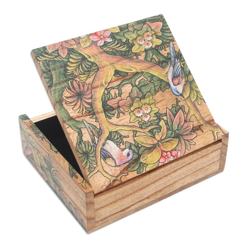 Crafted of Balinese crocodile wood, this exquisite jewelry box is painted by hand. Gusti Ngurah Semarajaya lines the petite jewelry box in luxurious black velvet.