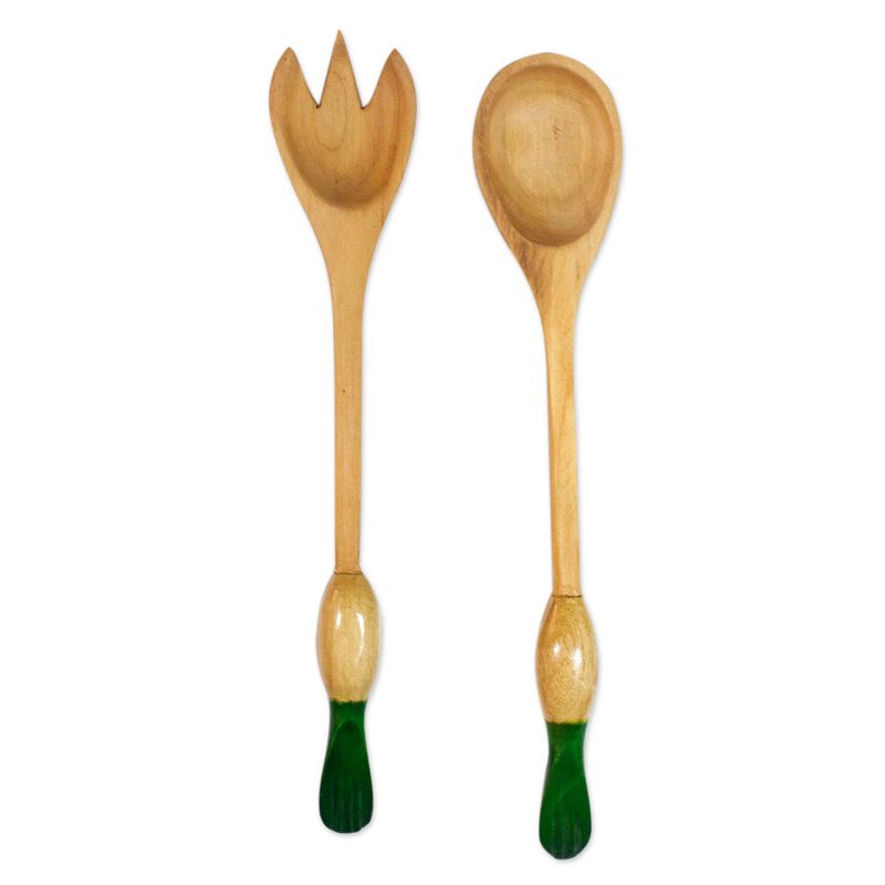 You can find our wood salad serving set 'Green Onion' (pair) by Victor Hugo Lopez in tableware categories such as Fruits and Veggies Serveware, Eco-Friendly Serveware, Wood Serveware and Serving Utensils Serveware. Enjoy exploring these sections for other Novica treasures.