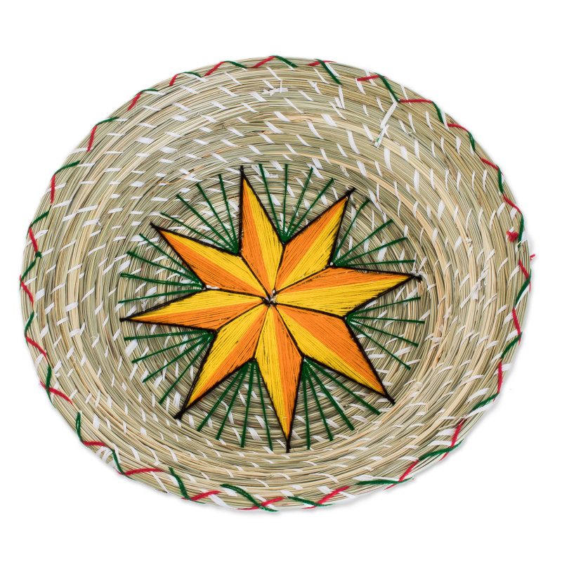 Backed by our 100% Happiness GuaranteeIn hues of yellow, an artisanal star is hand-embroidered by hand in the bottom of this decorative basket from Guatemala. Angelina Roquel creates this round basket, which she weaves by hand from natural paja fiber and accents with acrylic embroidery. The artisan draws inspiration from the beauty and elegance of women as she creates this basket.
